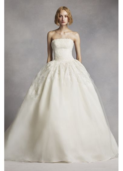 White By Vera Wang Lace Ball Gown Wedding Dress / White by Vera Wang strapless ball gown #davidsbridal ... - White by vera wang blush strapless flowers applique ball gown.